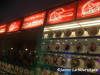 真的是人山人海哦!态度友善的侍应生给了我们queue number,需等20分钟。这种等待也让我们对它的 期望越高,希望吃饱后没有失望!等待的当儿,我们也没闲着!看到店外那一排排的pasta模型,不由自主地决定去拍照。日本人真厉害!总是能做出这些好看又很像很好吃的东西,让我们默默地站在那里流口水啊!